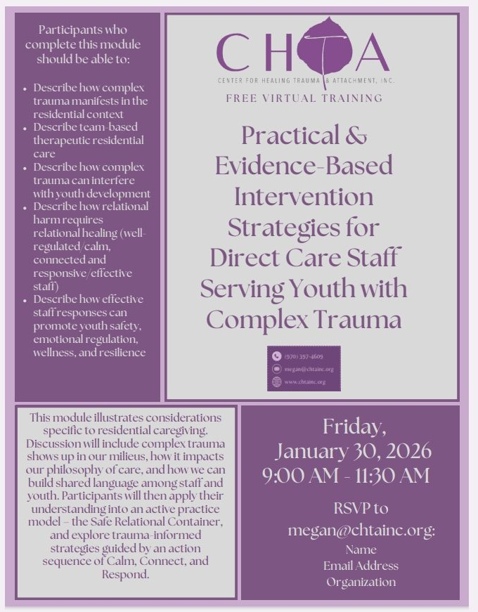 CHTA provides treatment to individuals with complicated trauma and attachment disruption